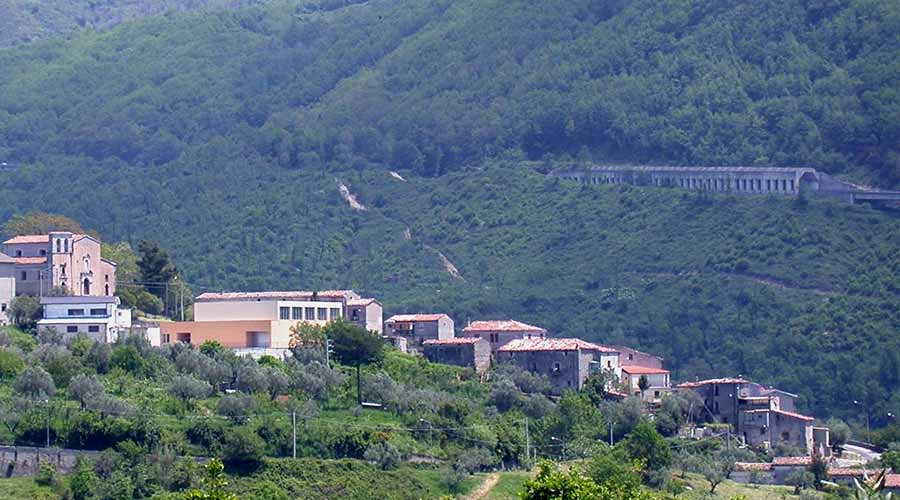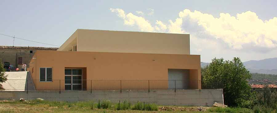 La costruzione del nuovo Mercato Coperto (previa demolizione di capannone preesistente) nasce dall’esigenza dell’amministrazione comunale di dotare il paese di un edificio a carattere polivalente. L’edificio in progetto deve essere quindi adattabile ad altre possibilità di utilizzo collettivo. Oltre agli ambienti di servizio e di distribuzione, è caratterizzato da un’ampia sala. L’area è su un terreno in pendio verso la vallata con la bellissima vista del mar Tirreno. La sezione è articolata su due livelli: quello inferiore che è l’area di vendita e servizi e il livello superiore della piazza “luogo da cui si può guardare lo spazio di vendita e il paesaggio naturale”. L’edificio è costituito da due semplici parallelepipedi sovrapposti: quello inferiore (seminterrato) un basamento chiuso con gli ingressi all’edificio e dal cui interno si può guardare la Chiesa e quello superiore, una di scatola di dimensioni più piccole, in gran parte vetrata, da cui si può traguardare l’interno dello spazio principale e la bellissima vallata del Savuto con il mar Tirreno. La struttura è in c.a., gli intonaci colorati, gli infissi in alluminio, la copertura in lamiera grecata sorretta da travature reticolari di ferro zincato, i pavimenti in cemento industriale e le soglie in pietra S. Lucido sono i principali materiali utilizzati.
